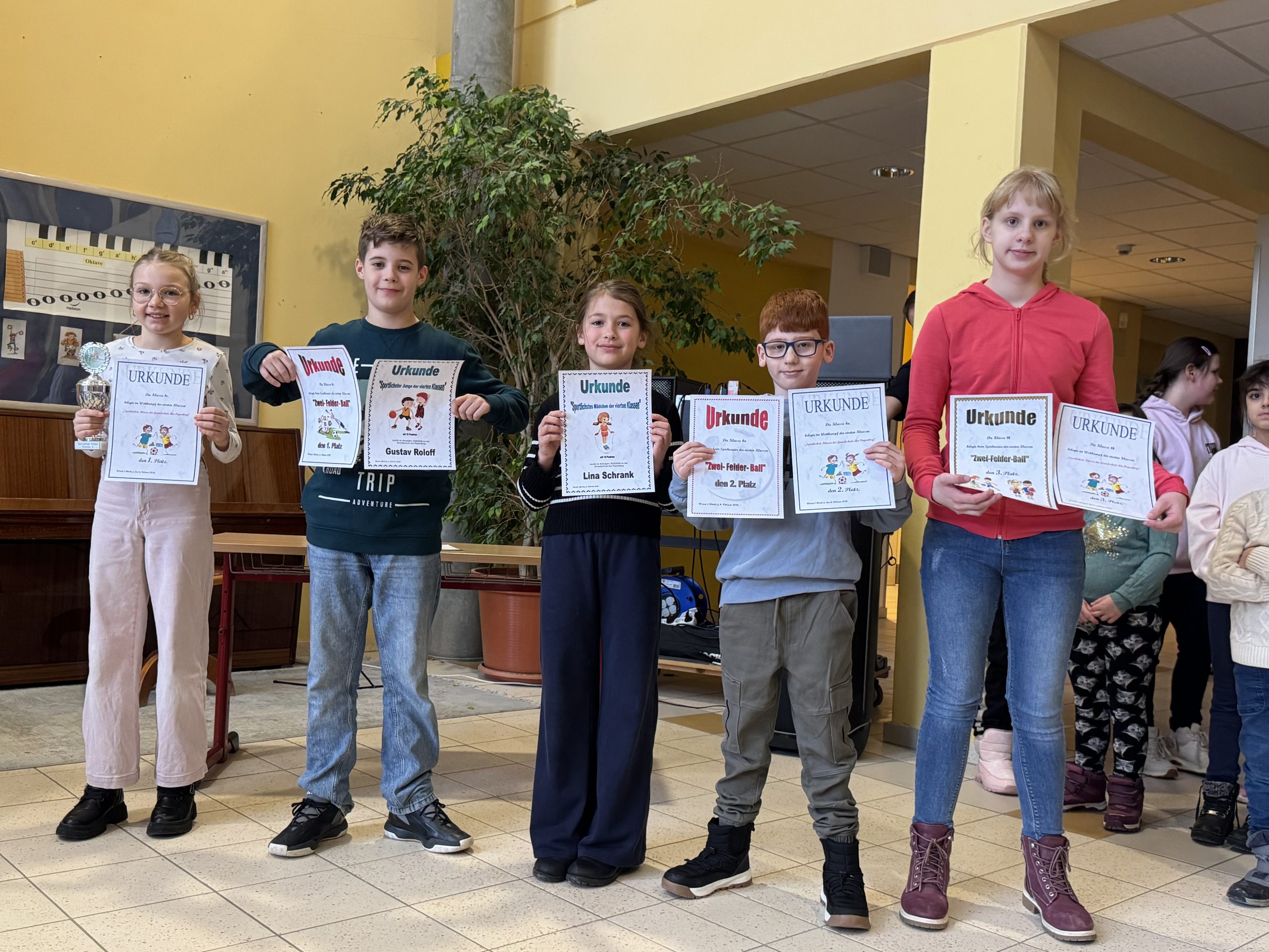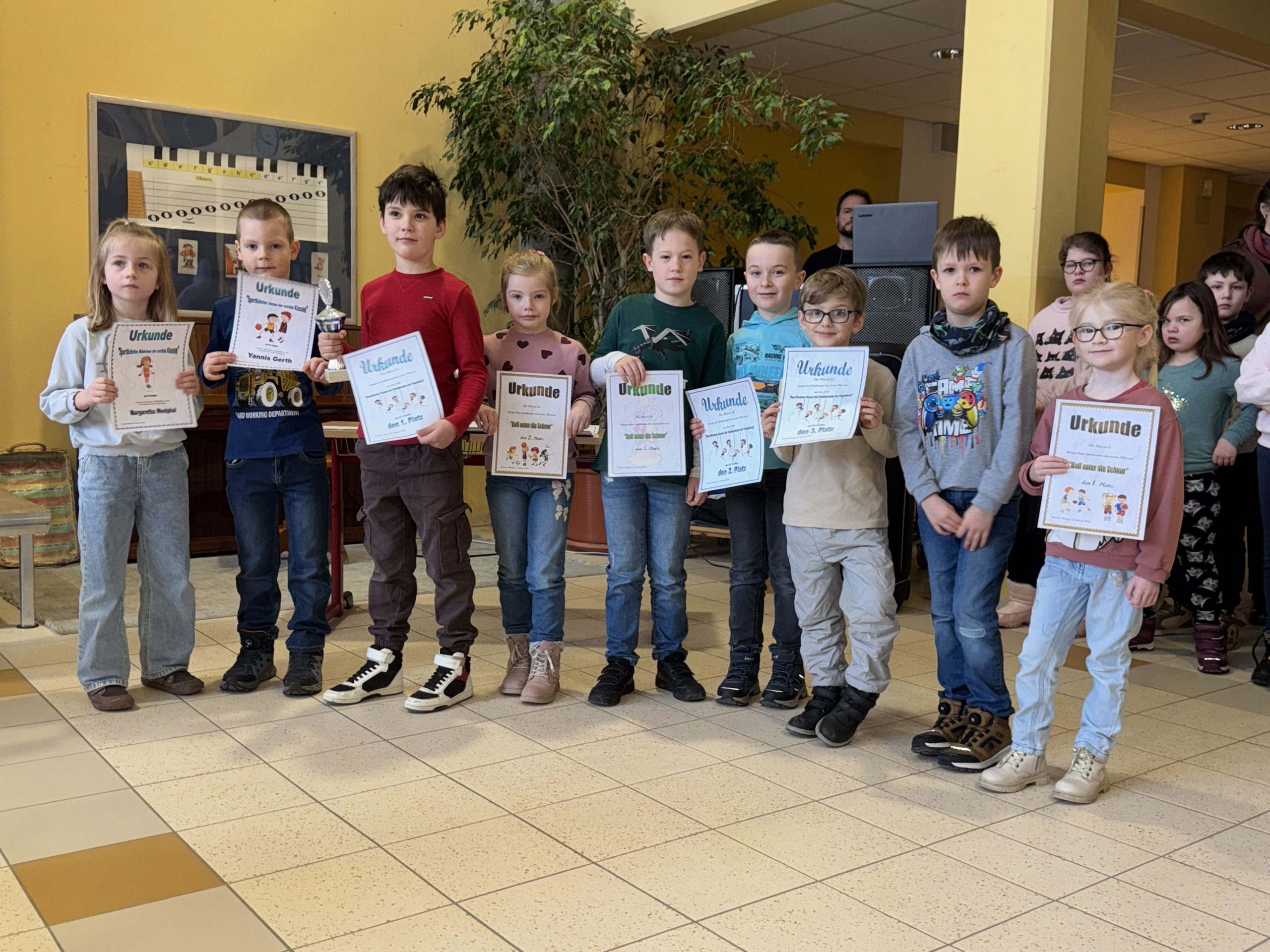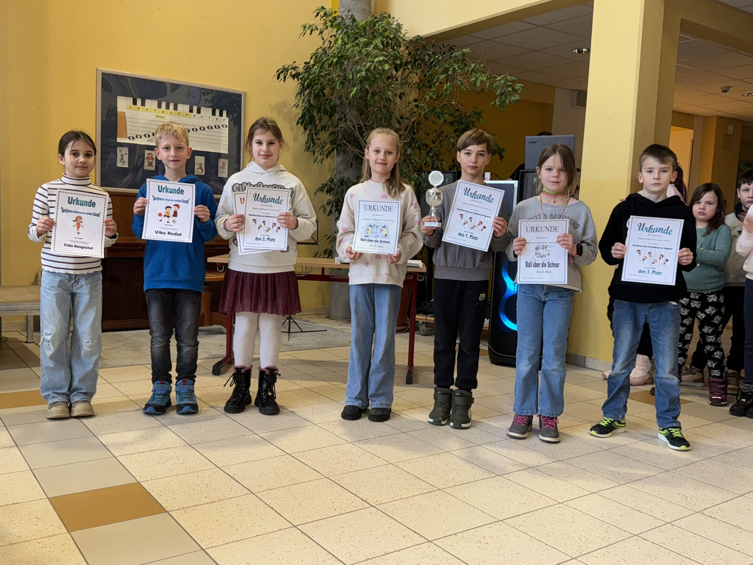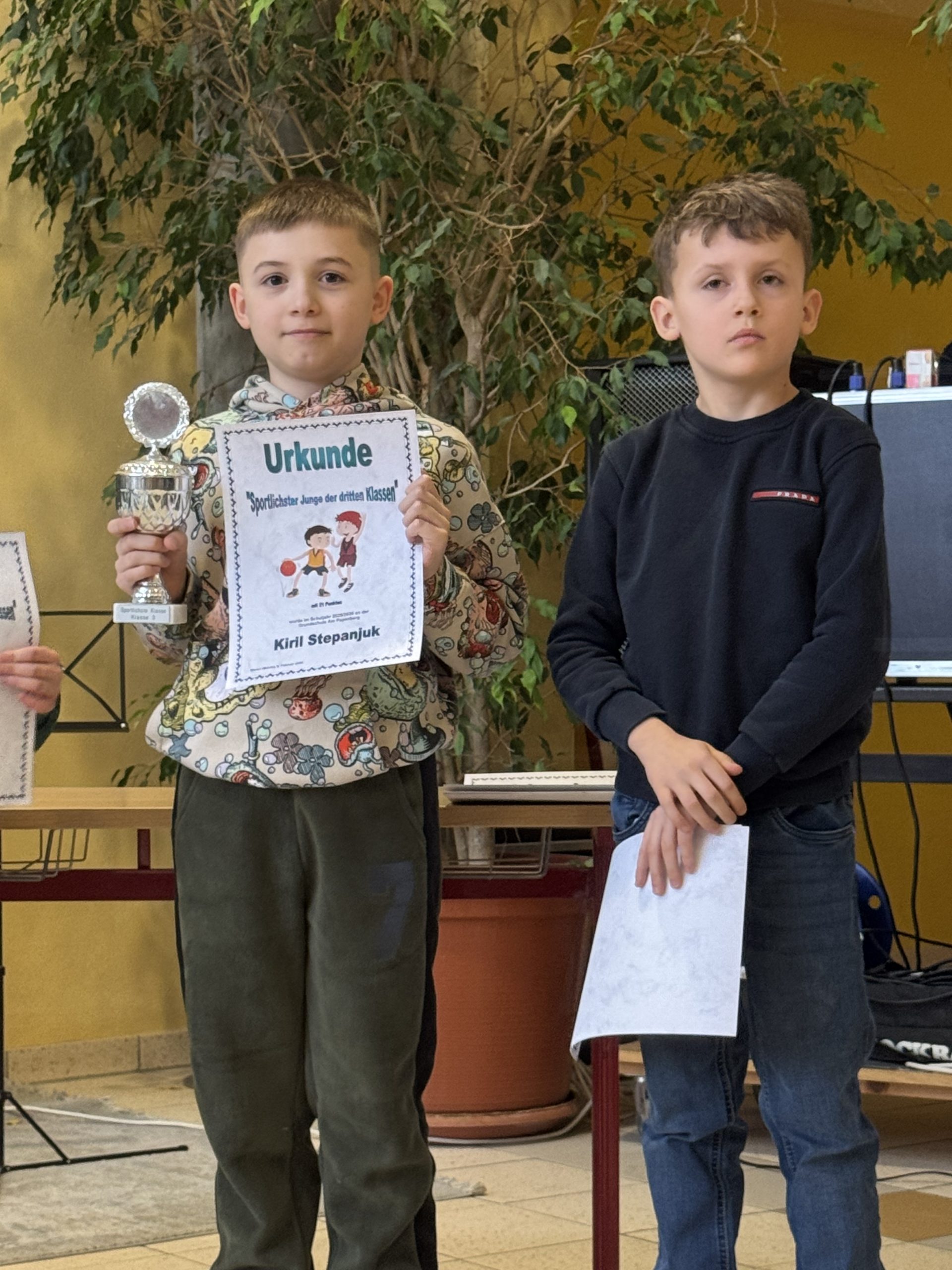 Vom 26.01 – 02.02.2026 fanden unsere Sportprojekttage in der Turnhalle statt. In allen Klassenstufen wurden die sportlichsten Schüler ermittelt, die sich über eine Urkunde freuen durften. Die sportlichste Klasse erhielt jeweils einen Pokal. Herzlichen Glückwunsch allen Siegern und Platzierten!
